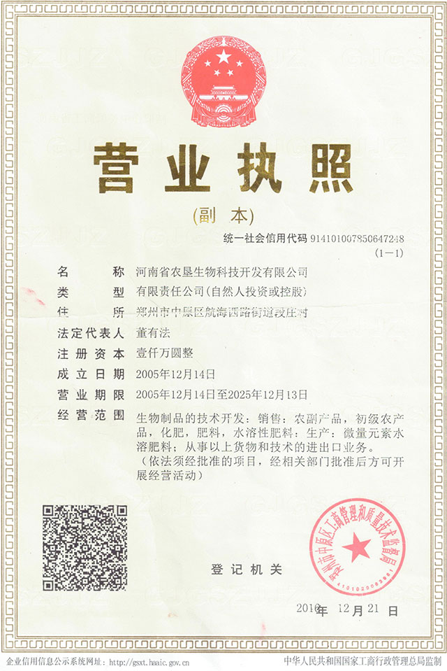 公司名稱:河南省農(nóng)墾生物科技開(kāi)發(fā)有限公司